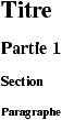 1 <H1> Titre </H1> 2 <H2> Partie 1 </H2> 3 <H3> Section </H3> 4 <H4> Paragraphe </H4>