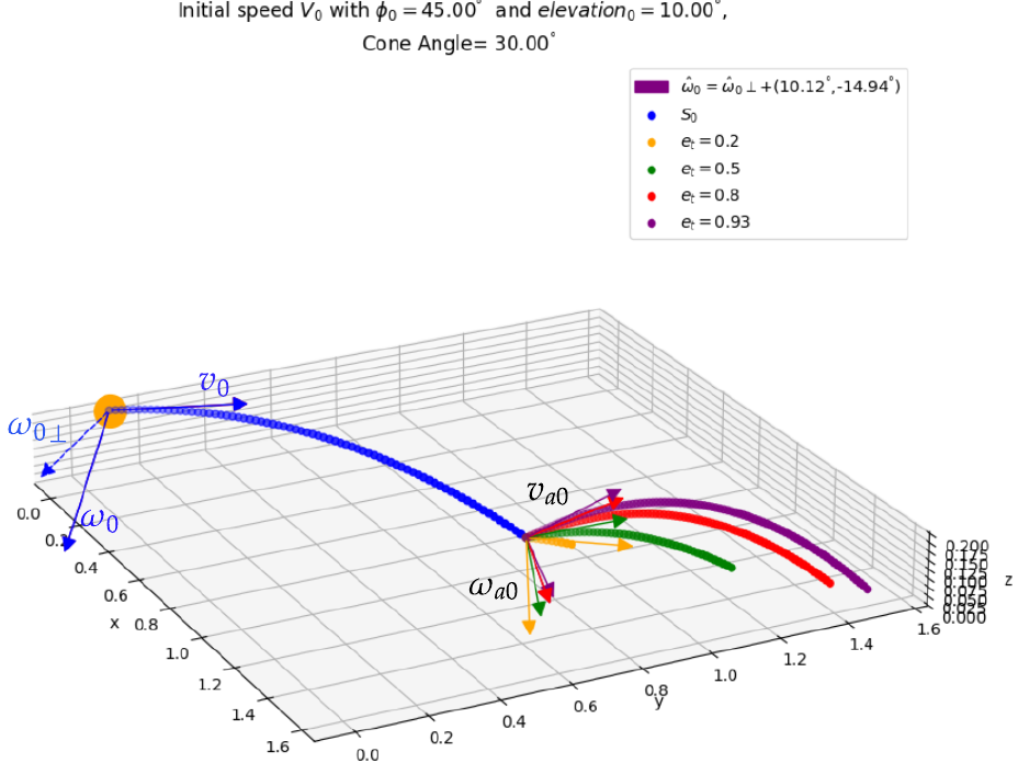 Vision-based methods for gesture analysis in sports can provide valuable insights to players and coaches, without any disturbing body-worn sensors. In table tennis, accurately predicting the trajectories of the ball and its 3D kinematics is crucial for assessing the effectiveness of a stroke. While several computer vision methods have investigated this area, they often focus on trajectory prediction solely, without considering physical parameters. Additionally, these studies are typically limited to controlled laboratory settings, which can be invasive and require extensive data collection. We propose a novel approach based on monocular vision video sequences relying on Physics-Informed Learning (PINN) to predict the 3D kinematics parameters using a small amount of data. Current advances involve taking account of rebounds through a set of PINNs linked together by physics equations.